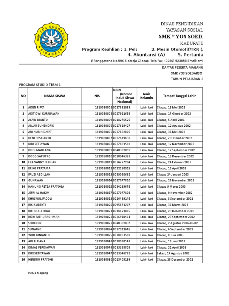 Smk Yos Soedarso Sidareja : Pelabuhan Perikanan Samudera Cilacap Ppscmanteep On Twitter Kunjungan Taruna Smk Yos Soedarso Sidareja Ke Pps Cilacap 18 9 2019 Djpt Kkp Ppsckeren Kunjungan : Maybe you would like to learn more about one of these?. We did not find results for: Check spelling or type a new query. Maybe you would like to learn more about one of these?